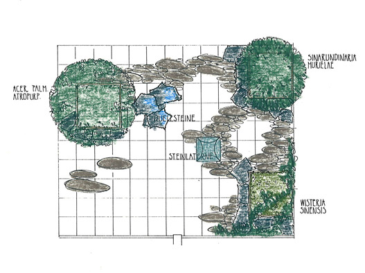 Aber wenn Sie nun doch vorher wissen wollen, wie die Komposition insgesamt ausfallen soll? Und wenn Sie wissen wollen, welche Kosten entstehen? Dann lässt sich das nur berechnen und aufzeigen, wenn das ganze Konzept steht. Wenn es schon einen Freiflächengestaltungsplan, zum Beispiel für einen geplanten Neubau, gibt dann kann dazu ein Angebot gerechnet werden.